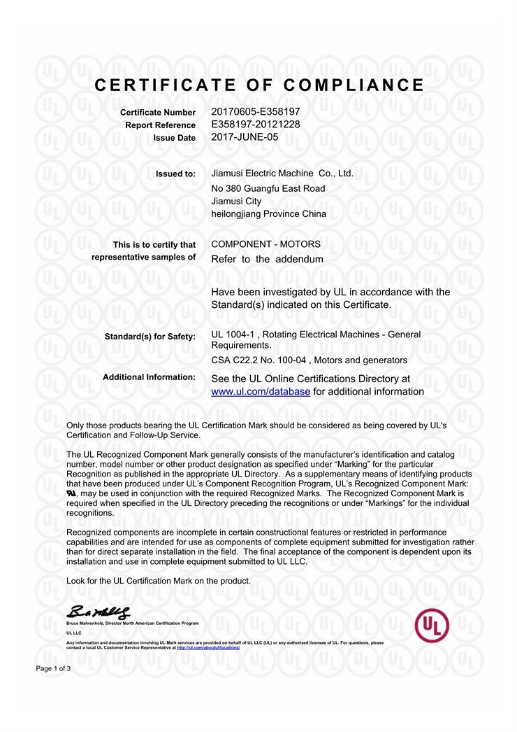 中央第一機(jī)械工業(yè)部佳木斯電機(jī)廠